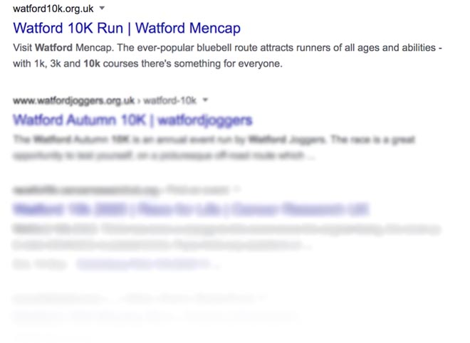 Delivery of the website included Search Engine Optimisation as part of our Robust Package. The slick new website sits first place on Google, placing the Watford 10K Run at the forefront of its audience.